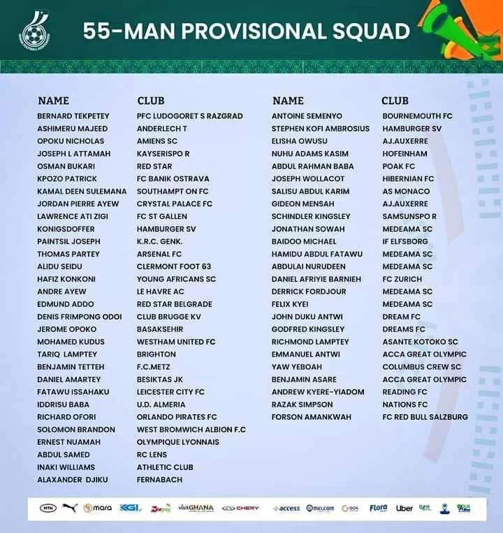 Below is the 55-man Ghana squad list released by CAF: