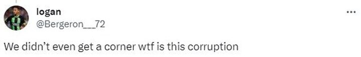 A third added: 'We didn't even get a corner wtf is this corruption?'